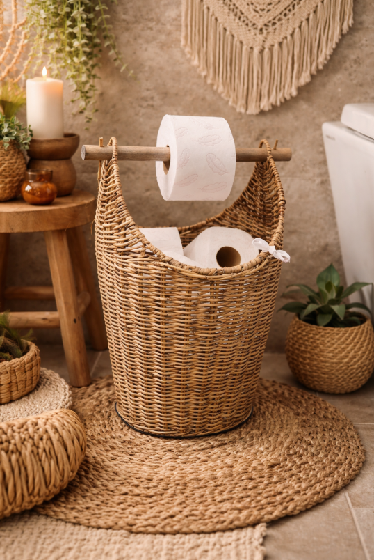 Geef je toilet of badkamer een sfeervolle én praktische touch met deze prachtige rieten toiletrolhouder van Decoshoppen.nl.