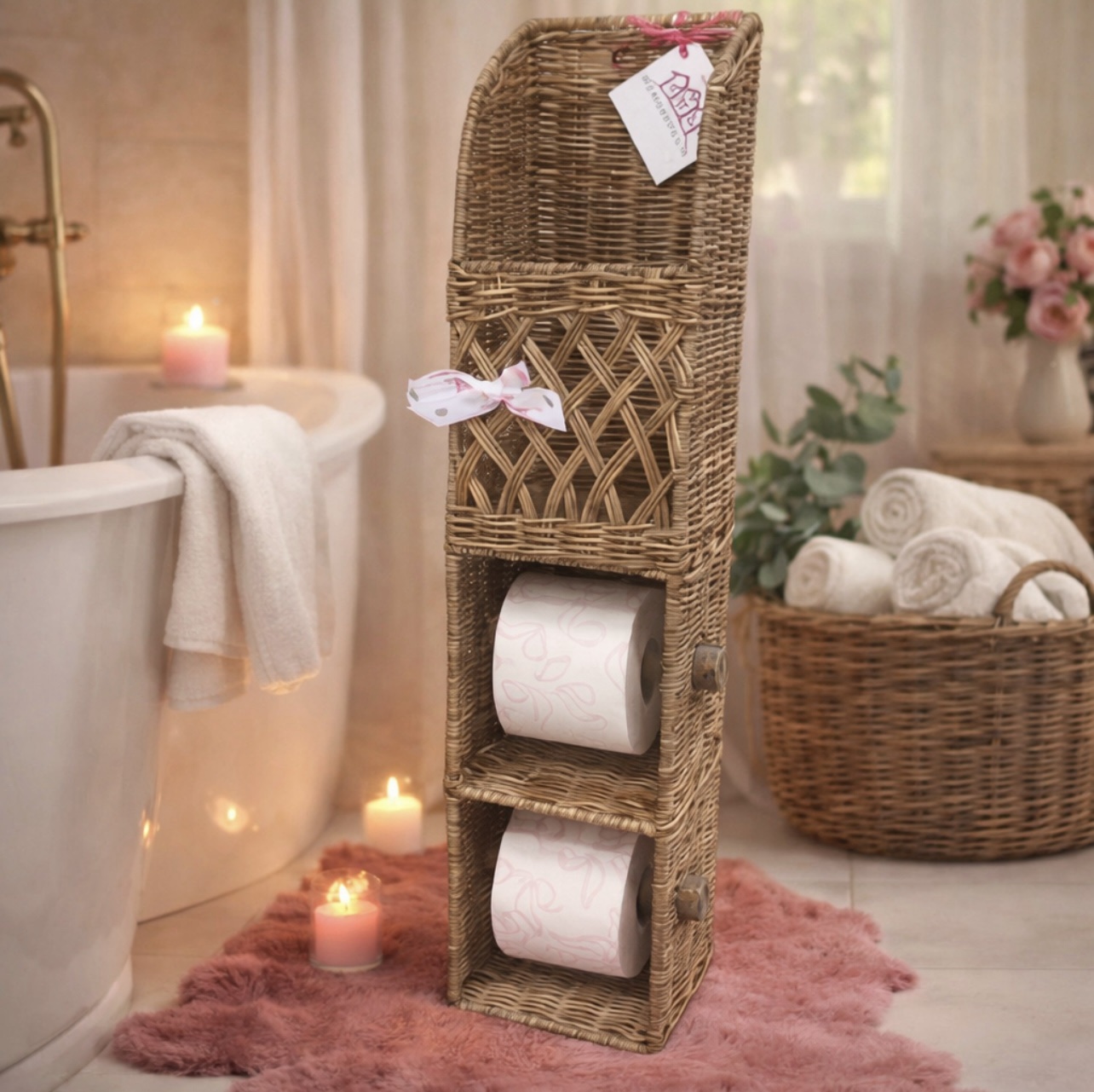 De toiletrolhouder riet is sfeervol in de toilet.De Houder heeft maar liefs ruimte voor 2 rollen en ook ruimte aan een krantje of magazine.
