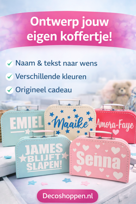 Met het Kinderkoffertje Eigen Ontwerp van Decoshoppen.nl geef je een cadeau dat écht persoonlijk is.