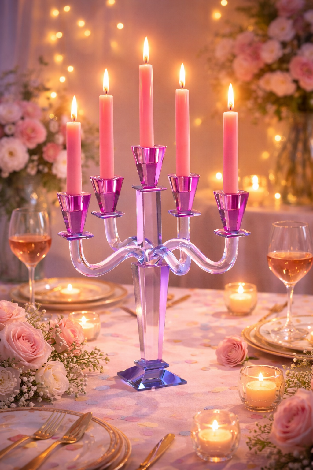Deze luxe Fancy Crystal 5-vlammen kaarsenhouder in diep paars glas is een uitgesproken statement piece voor high-end interieurstyling.