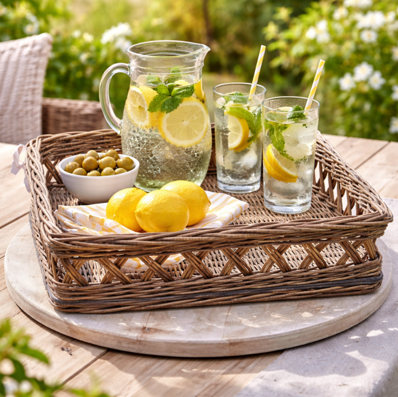 Gebruik het op de salontafel als stijlvolle basis voor kaarsen, accessoires of een mooie vaas, of zet het op de eettafel in de keuken voor een gezellige, opgeruimde look. Ook ideaal om drankjes en hapjes te serveren tijdens een zomerse dag.