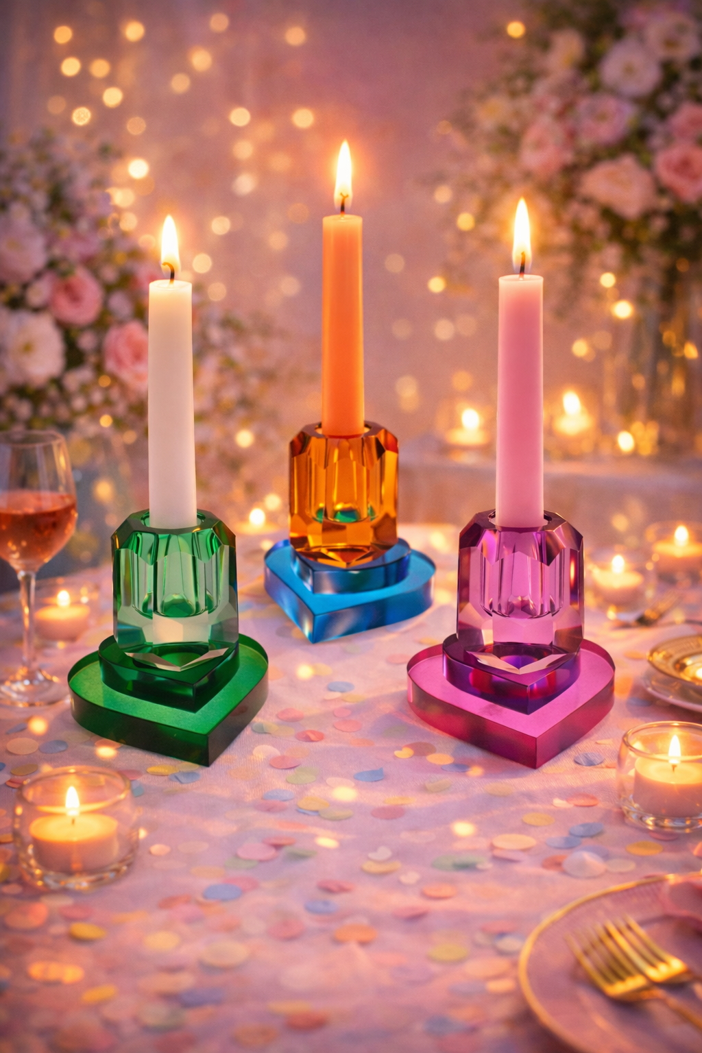 Kristallen Kaarsenhouder hart set 3