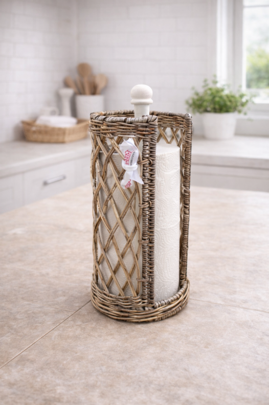 Deze keukenrolhouder van riet combineert praktisch gebruiksgemak met een warme, landelijke uitstraling. Ideaal om keukenpapier altijd binnen handbereik te hebben tijdens het koken, bakken of schoonmaken.