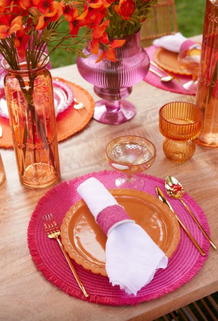 Geef je tafel direct een vrolijke en stijlvolle uitstraling met deze set van 2 glazen borden in oranje en roze. Het fijne reliëfpatroon en de heldere kleuren zorgen voor een speelse, elegante look die perfect past bij een zomerse tafelsetting.