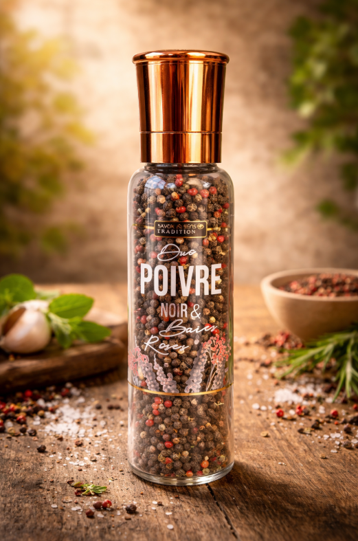 Rijke melange van zwarte peper & roze peperbessen