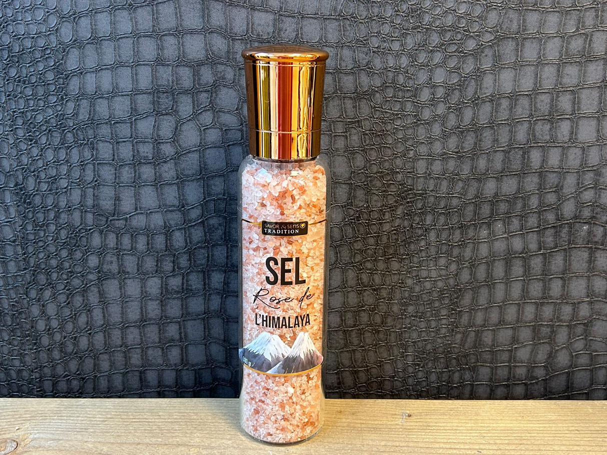 Ontdek de pure smaak van de bergen met dit Roze Himalaya Zout van Savor & Sens Tradition.